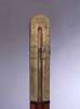 engraved brass vernier with arched top, wooden cover to the tube, reeded rectangular reservoir with stepped top
