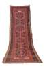 the rust field with five blue ground medallions divided by half medallions, within multiple borders, signed and dated in panel