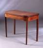 the D-shaped foldover top with reeded edge above boxwood strung frieze and square section tapered legs