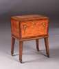 with neo-Classical floral painted decoration, rosewood crossbanding and ebony stringing, of tapering sarcophagus form with hinged lid, on square section tapering splayed legs