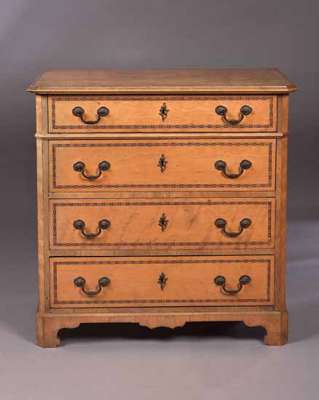 A George II style satinwood veneered chest of drawers