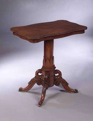 the moulded serpentine top, rising on square column to reveal a second smaller tier, on octagonal column and acanthus carved and scrolled quadriform base