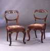 each with moulded and leaf carved scallop back centred by anthemion above gros point stuffover seat and cabriole legs with scroll toes
