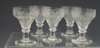 with part faceted bell bowl having vine etched frieze, on knopped stem with bold circular foot, 14.5cm high; and a pair of decanters to match with tall facet cut neck, spire stopper and star cut foot (10)
