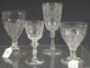 a tall Victorian wine glass with bell bowl etched with monogram and maiden hair fern decoration; a Victorian rummer with vine and wheat sheaf decorated bowl; another smaller glass with flower spray decorated bowl (4)