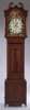 the twin train movement with anchor escapement striking on a bell, the arched dial decorated with the Seasons, the corniced flat topped hood with columns above bowed trunk door flanked by engaged half columns, panelled base with shaped apron and bracket feet