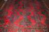 the red field with allover medallion and cruciform pattern in blues and greens, within red rosette border between stripes