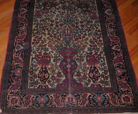 the ivory field with tree of life pattern incorporating birds, within flowerhead border between matched guard stripes