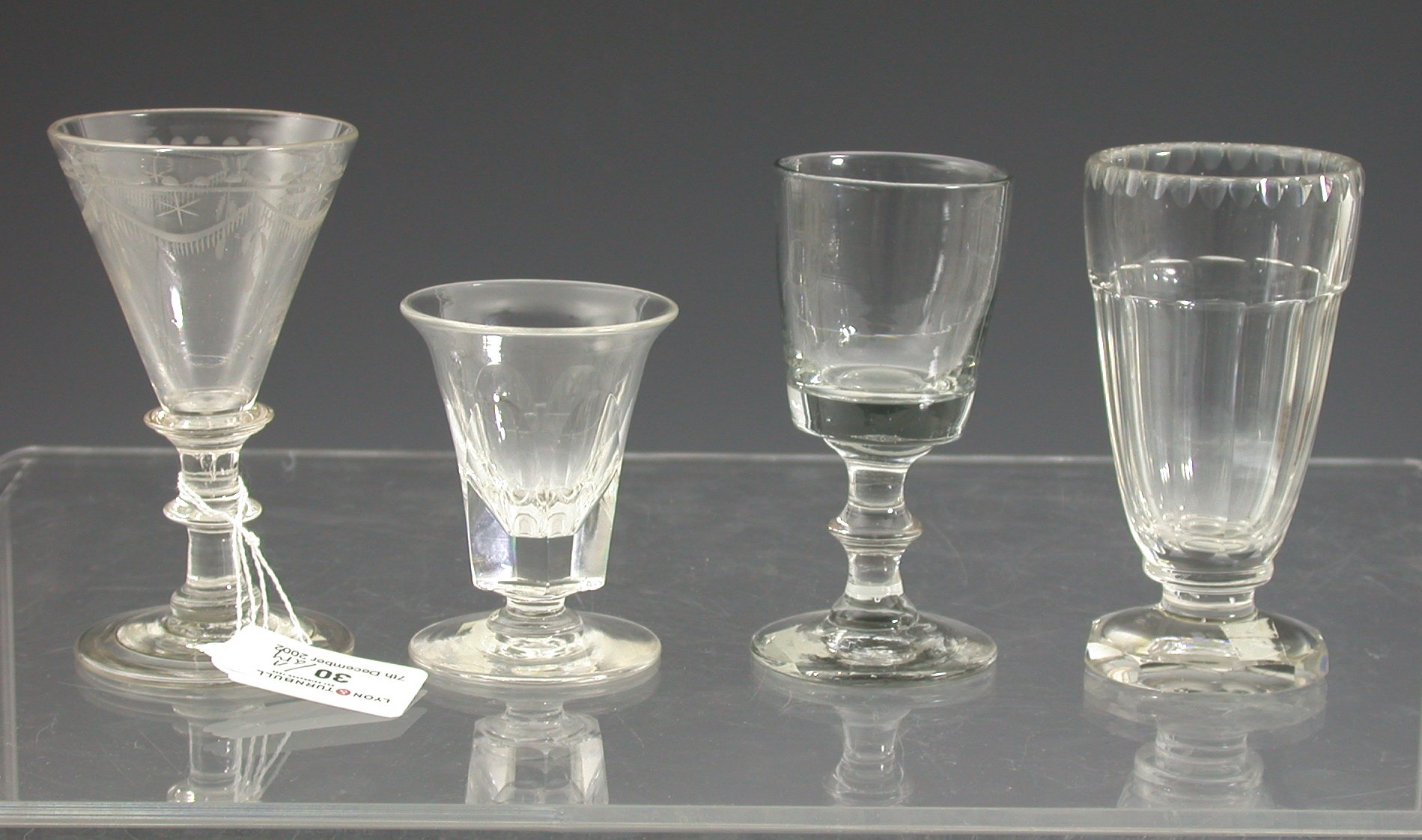 with etched swag frieze, 11cm; three faceted custard glasses, remaining 19th century glass ware (a lot)