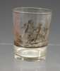 in Hausmaler style with continuous hunting scene, mounted hunter and attendant attaching a boar, with a castle in the distance, possibly by Ignaz Preissler, Kronstadt