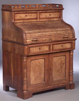 A Victorian burr walnut tambour bureau