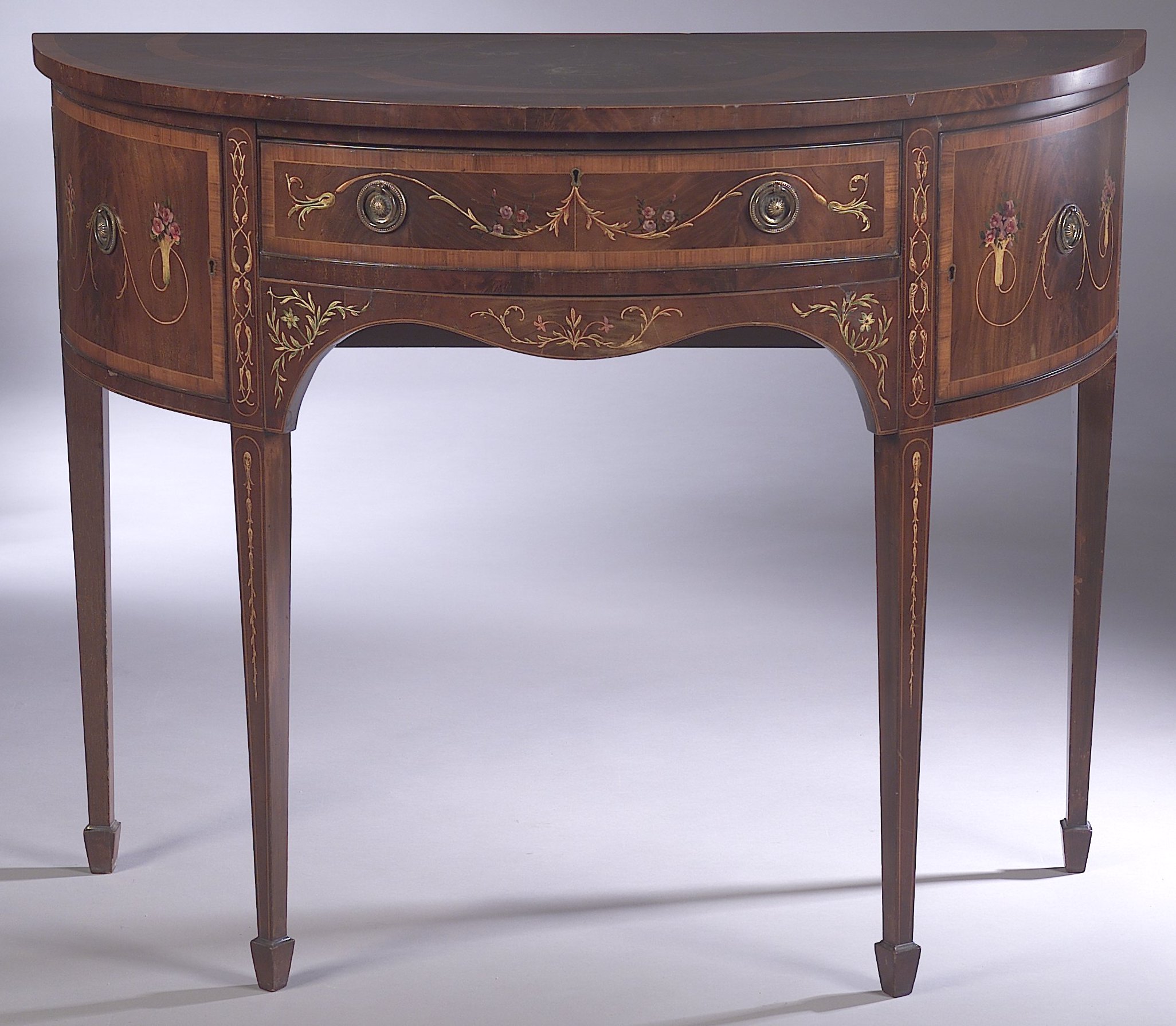 A late 19th century Adam Revival demi-lune mahogany sideboard