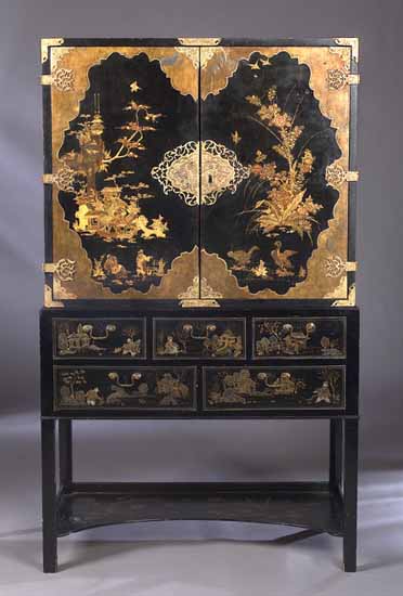 A Chinese lacquered cabinet on stand
