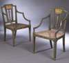 A pair of painted George III open armchairs