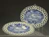 each with scalloped pierced basket weave border, the central canted rectangular panel depicting a stag being attacked by hounds within passion flower and vine decorated border (2)