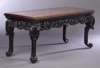 with marble inset top over carved frieze and bold scrolling legs with ball and claw feet