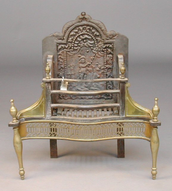 A 19th century iron and brass basket grate