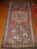 the red field with one white and two blue medallions containing cloud scrolls, green spandrels, within ivory linked stars border between stripes