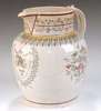 with loop handle and cylindrical neck with continuous flower sprig border, above shield cartouche panel with monogram and dated 1806, flanked by a pair of loose flower sprays below stiff leaf painted collar