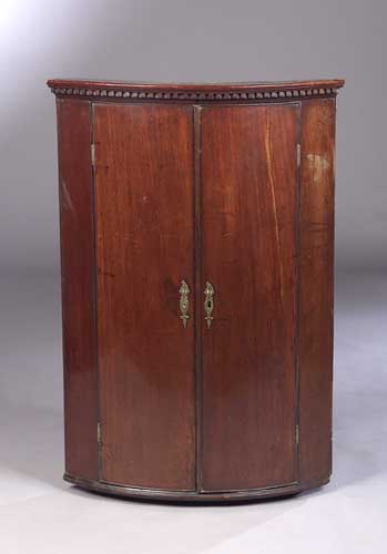 A George III mahogany bowed corner cupboard