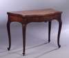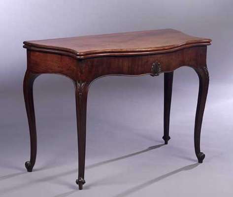 in the Hepplewhite style, the serpentine top with moulded edge above a serpentine frieze raised on double gate action cabriole legs carved to the knees