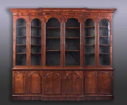 An early Victorian rosewood breakfront bookcase