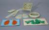 also a plain circular bangle; a tongue depressor; a panel carved with writhing dragon, 7cm wide; various pierced jade fashion accessories; and carved malachite and agate fashion accessories