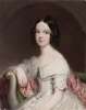circa 1840, painted with oils on ivorine and depicting a young lady in a white dress, with moulded gilt frame