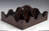of rectangular form with pierced carrying handle, divided into six compartments for bottles, with arc-en-arbelette edging
