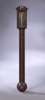 the rectangular brass backplate with temperature and vernier scales inscribed "Deo Stampa & Co., No.14 Leith Street, Edinburgh," encased within glazed wood with broken pediment above chequer strung and moulded column supporting mercury glass, turned reservoir cover below