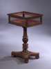 the rectangular glazed and hinged lid (glass lacking) with beaded edge above glazed sides raised on a turned and knopped column on concave quadruped base with flattened bun feet
