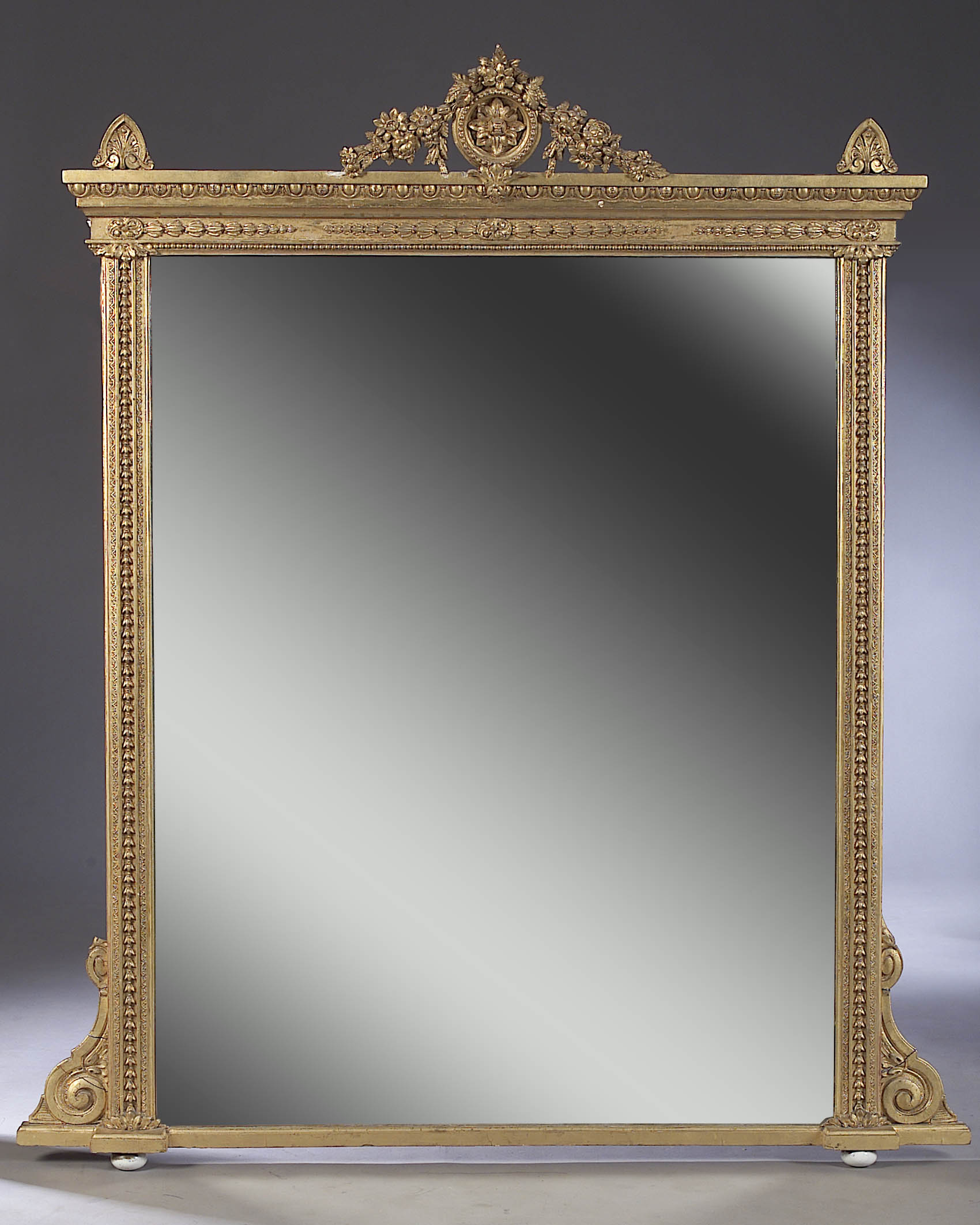 An Edwardian giltwood and gesso neo-Classical overmantel mirror