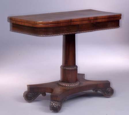 A Regency rosewood foldover card table