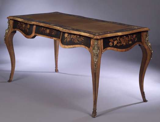 A mid 19th century walnut and marquetry inlaid bureau plat