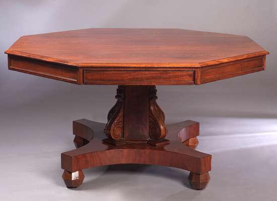 A mid 19th century mahogany octagonal library table