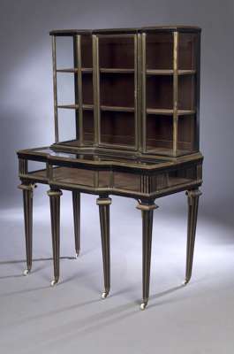 A late 19th century ebonised and brass mounted display cabinet