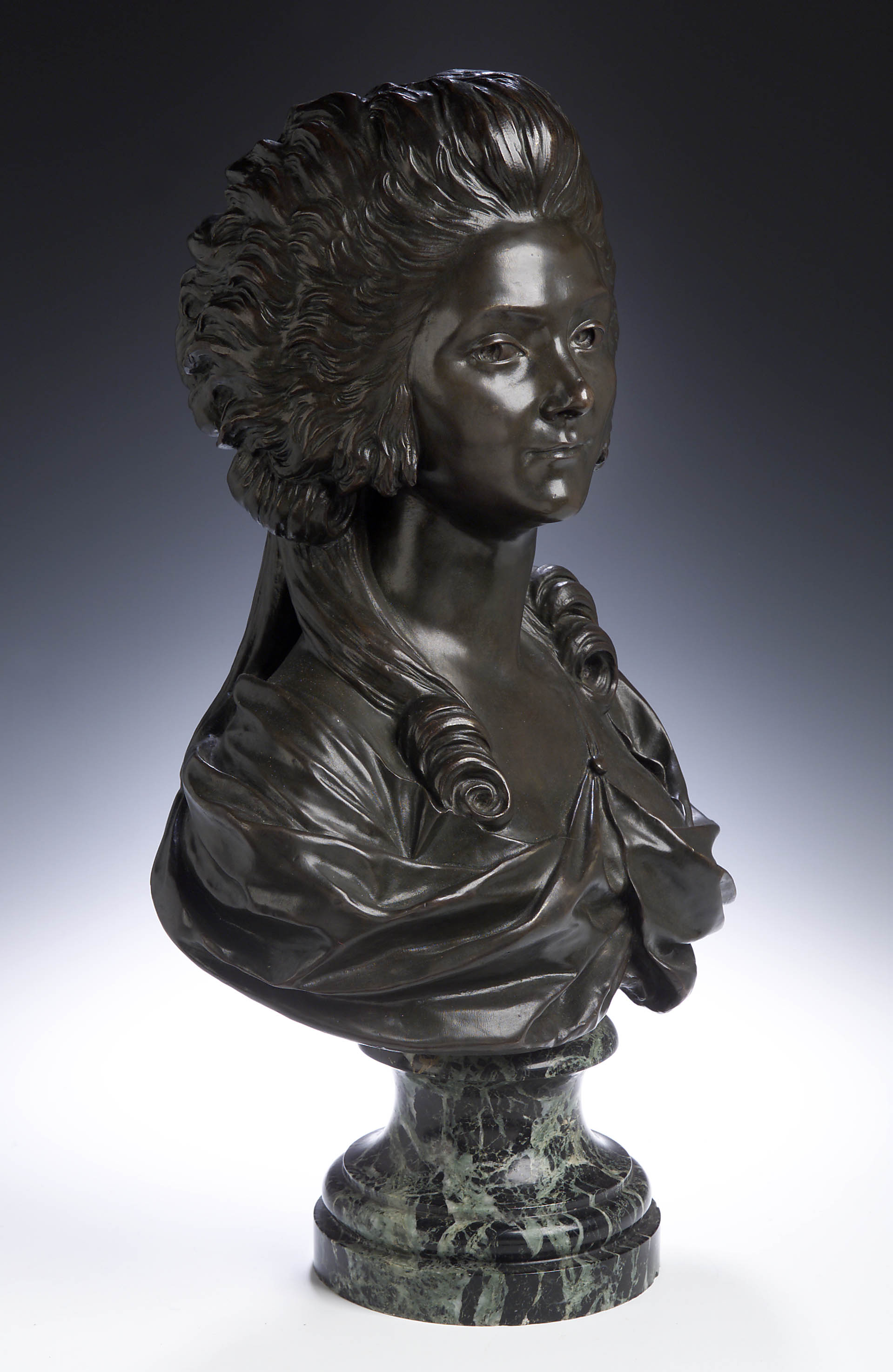 A bronze bust of a lady,