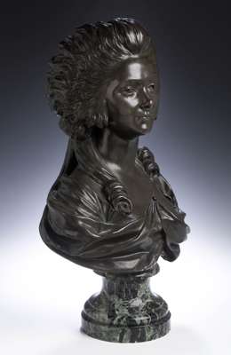 A bronze bust of a lady