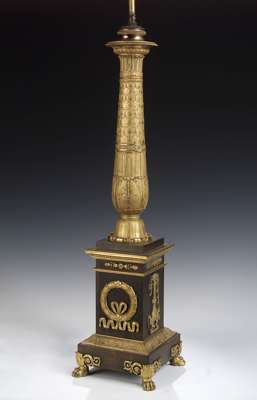 An Empire style bronze and ormolu table lamp