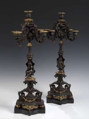 A pair of 19th century bronze and ormolu candlebra
