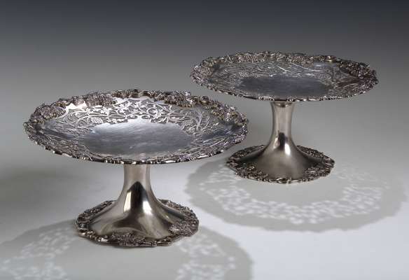 A matched pair of silver tazza