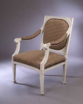 A white painted and upholstered fauteuil