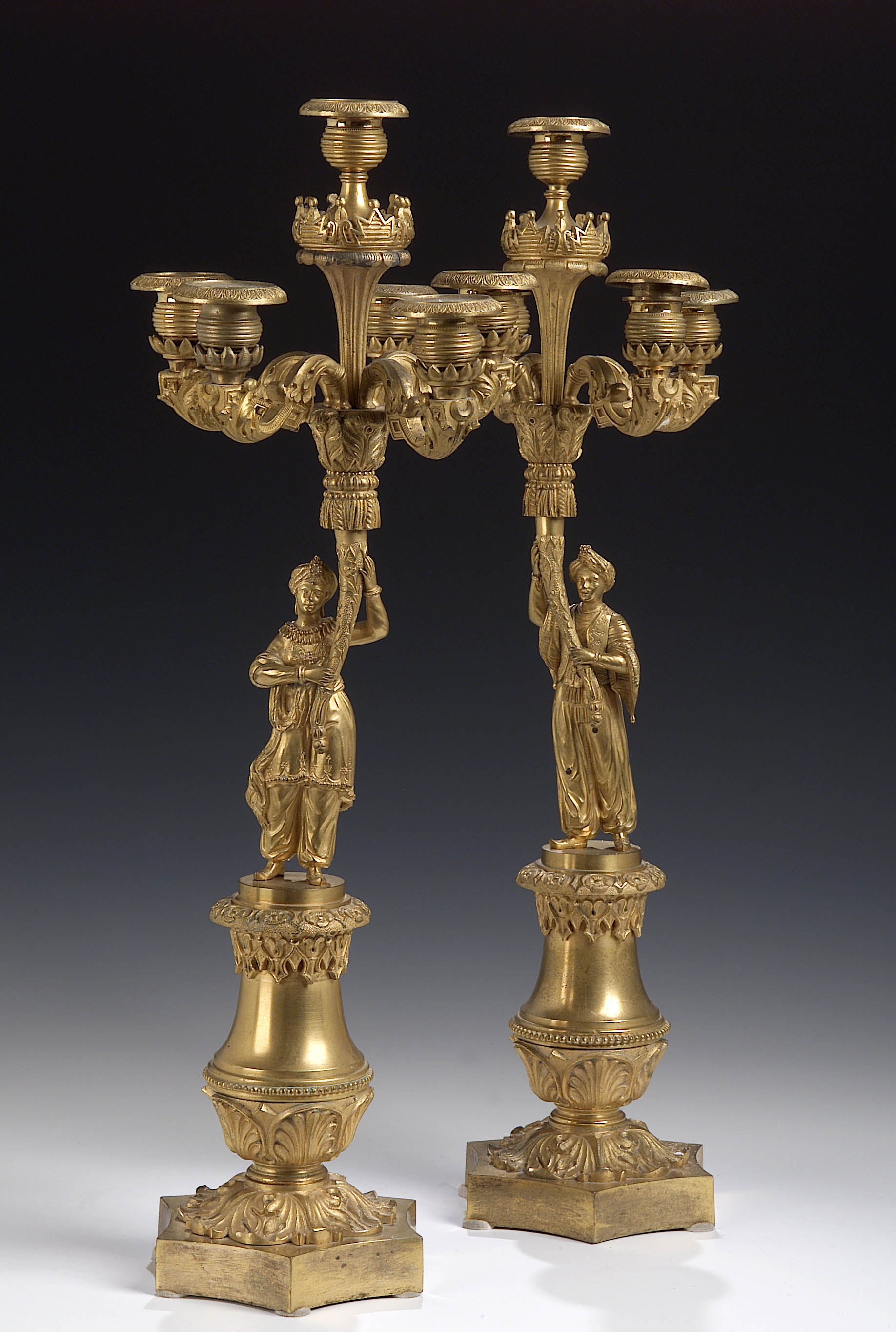 A pair of Empire gilt bronze five-branch candelabra