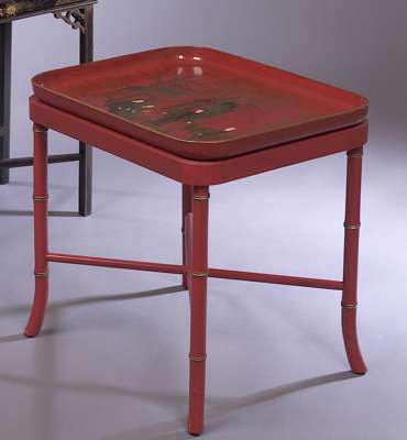 A red lacquer tray on stand