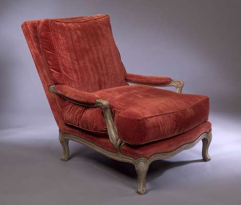A stained beech and upholstered bergere