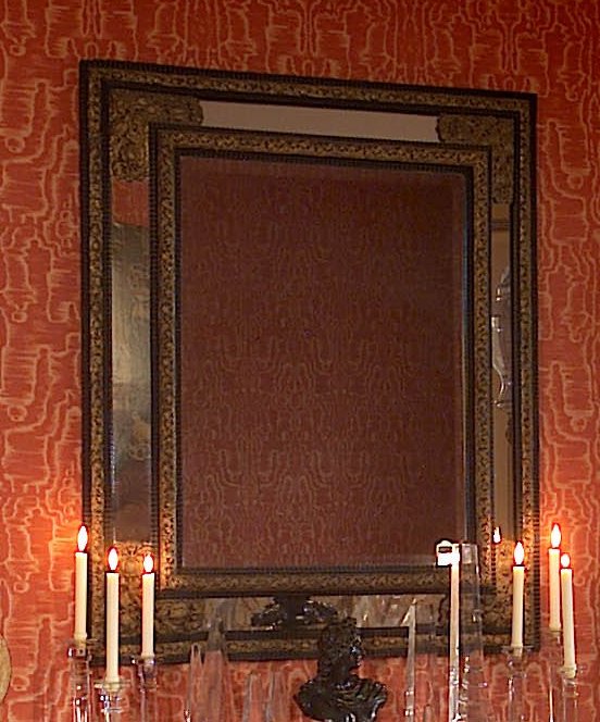 of Dutch style, the cushion moulded frame with foliate corners, enclosing a bevelled rectangular mirror plate