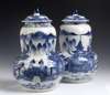 A pair of 19th century Chinese gourd shaped blue painted vases and covers,