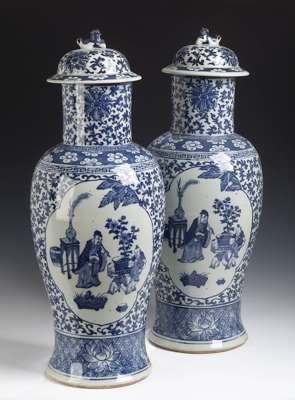 A large pair of late 19th century Chinese baluster vases and covers,