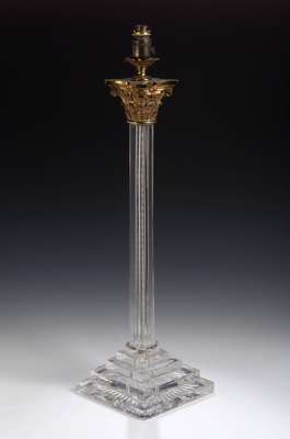A late 19th century glass and gilt brass Corinthian column table lamp,
