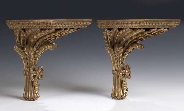 A pair of giltwood wall brackets